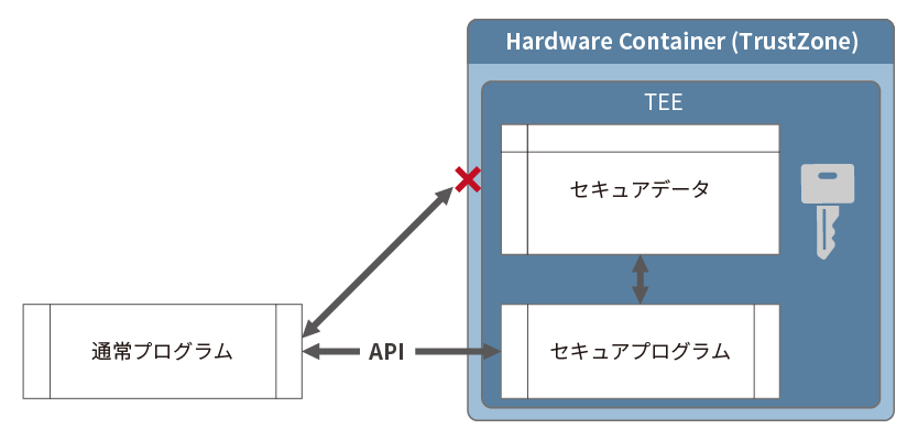 信頼できないプログラムが混入する可能がある場合、秘匿データや実行コードをセキュアストレージで守りたい、というニーズに応えます。
